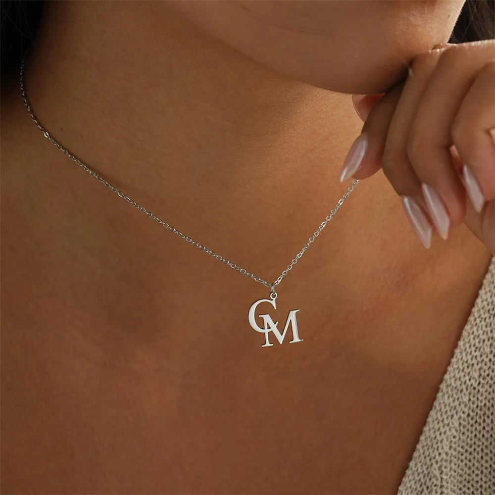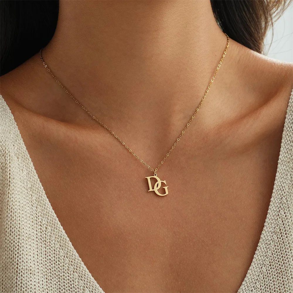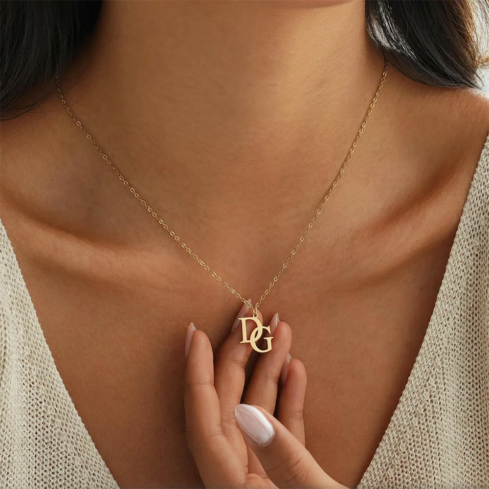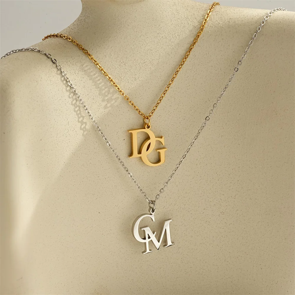 Tangula Custom Initials Necklaces for Women Stainless Steel Two Letters Pendant Choker Personalize Anniversary Jewelry Gifts